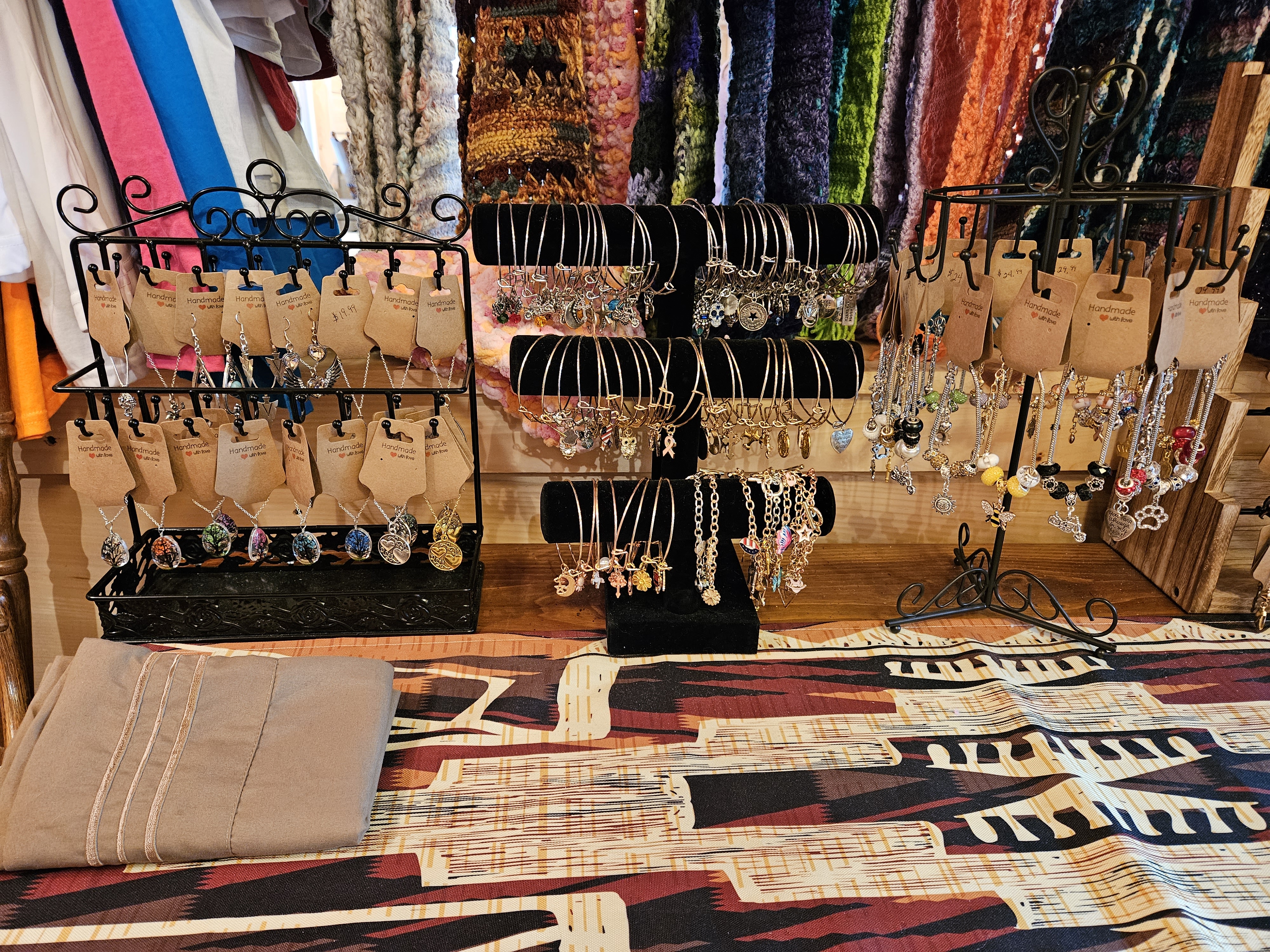 Welcome to our gift shop, it has items such as Jewelry which is made by our owner, Dana. She also makes Baby Blanket sets, hat, scarf & headband sets, along with other items. You can take home a souvenir from our Hammer’s Hideaway Campground merchandise. We also have camping supplies and even a few groceries, just in case you forgot anything. We also sell Gold Panning Supplies. So come on by and check us out!