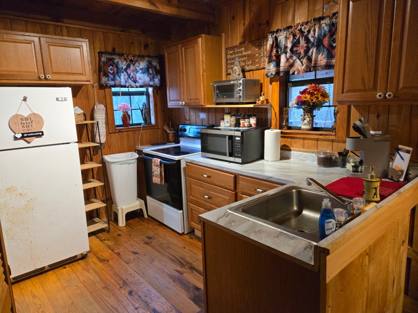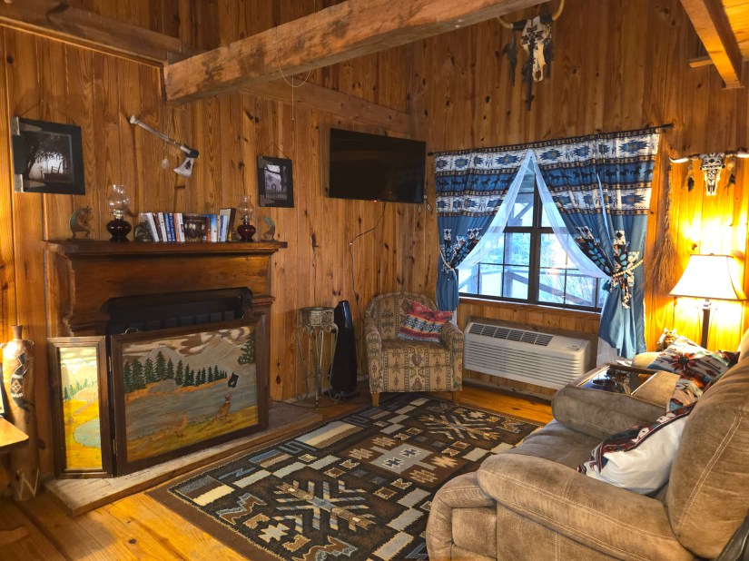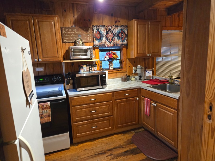 Our Rustic Log Cabin is a peaceful and tranquil place to relax and unwind from the daily hustle and bustle. It is set up to sleep 4 people comfortably with a full size bed and 2 twin beds. It has a full kitchen, and a full bathroom. The back porch sits right along Coker Creek, where you can sit in a rocking chair and listen to the creek and watch the birds and fireflies. There is free wi-fi for those of you who must stay in touch with the outside world.